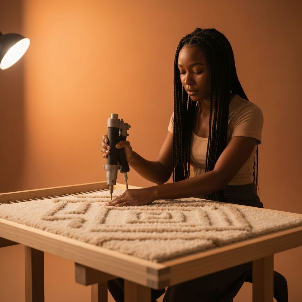 We are a small studio dedicated to the art of hand-tufting. Each rug begins as a sketch and becomes a one-of-a-kind textile, crafted entirely by hand using a precision tufting gun and 100% natural wool.